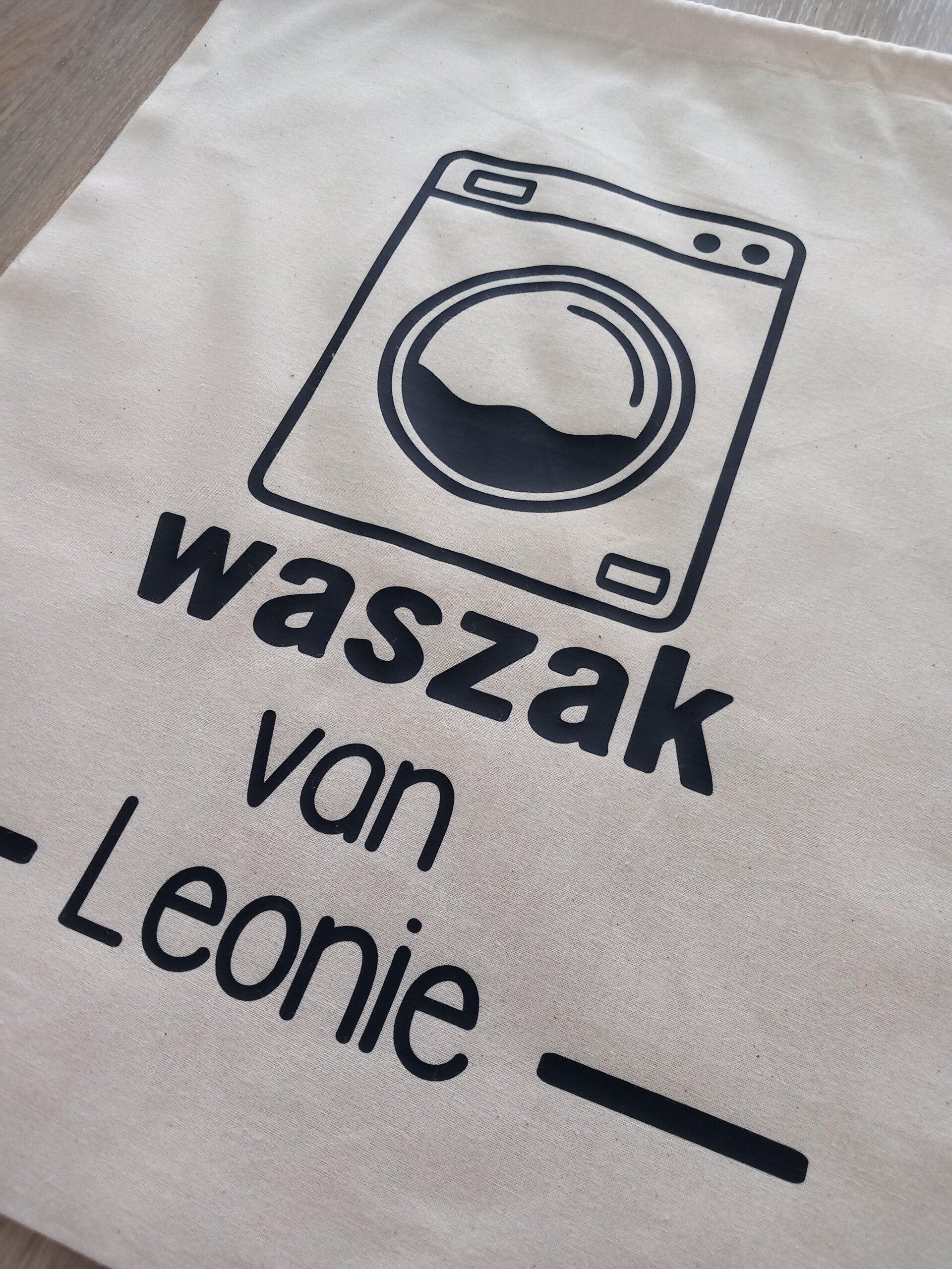 verkrijgbaar in naturel (met zwarte opdruk) of donkerblauw (met witte opdruk)