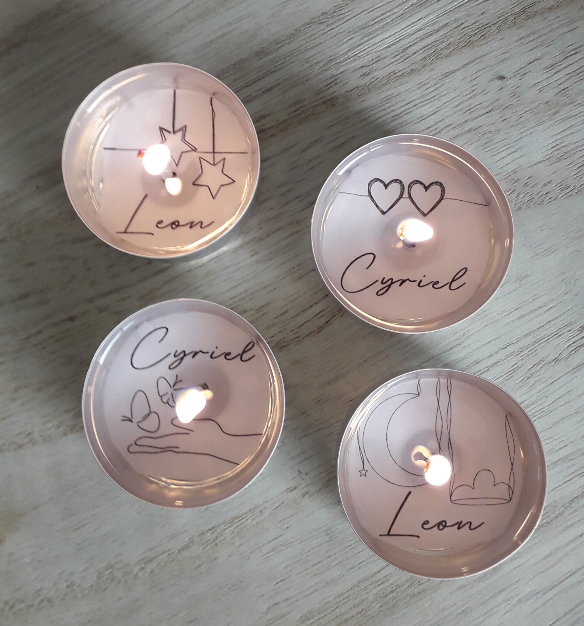 Steek het kaarsje aan... een uurtje geduld en een naam, afbeelding, ... verschijnt. Elk kaarsje brandt ongeveer 6u.