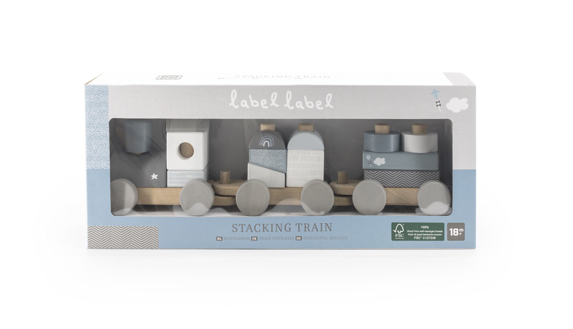 De houten blokken, voorzien van verschillende kleuren, symbolen en patronen, kunnen zonder de wagons gebruikt worden om te stapelen, bouwen... Ook de wagonnetjes kunnen aan en van elkaar geschakeld worden.