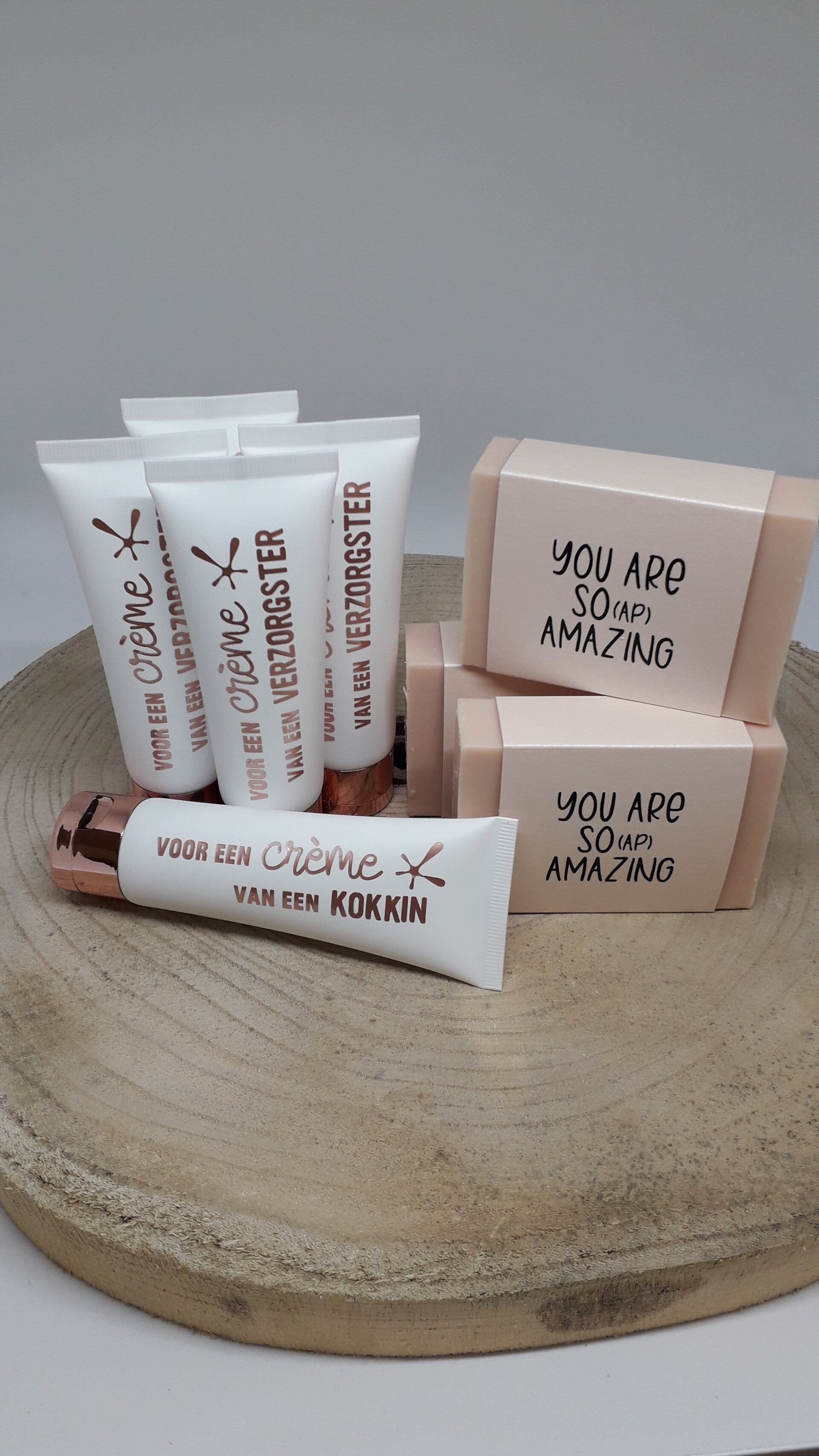 Handcrème - diverse kleurenStandaard heeft de handcrème een gouden klapdop, maar er is ook een rosé klapdop verkrijgbaar (aan te duiden bij de 'kleur').